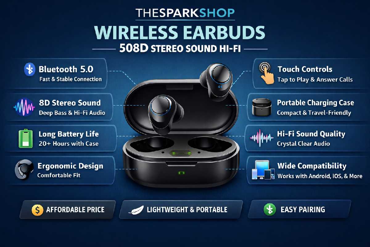 Wireless earbuds have become one of the most popular audio accessories in recent years. With the rise of smartphones, online streaming, gaming, and virtual meetings, people prefer compact and wireless audio devices that provide freedom from tangled cables. Among the many affordable options available in the market, Thesparkshop.In Wireless Earbuds 508d Stereo Sound Hi-Fi have gained attention for offering advanced features at a budget-friendly price.